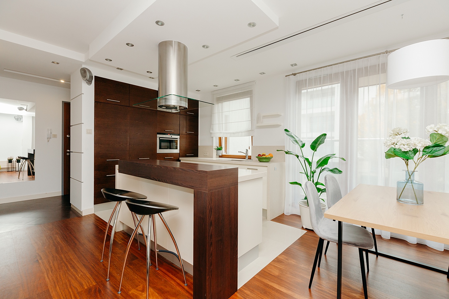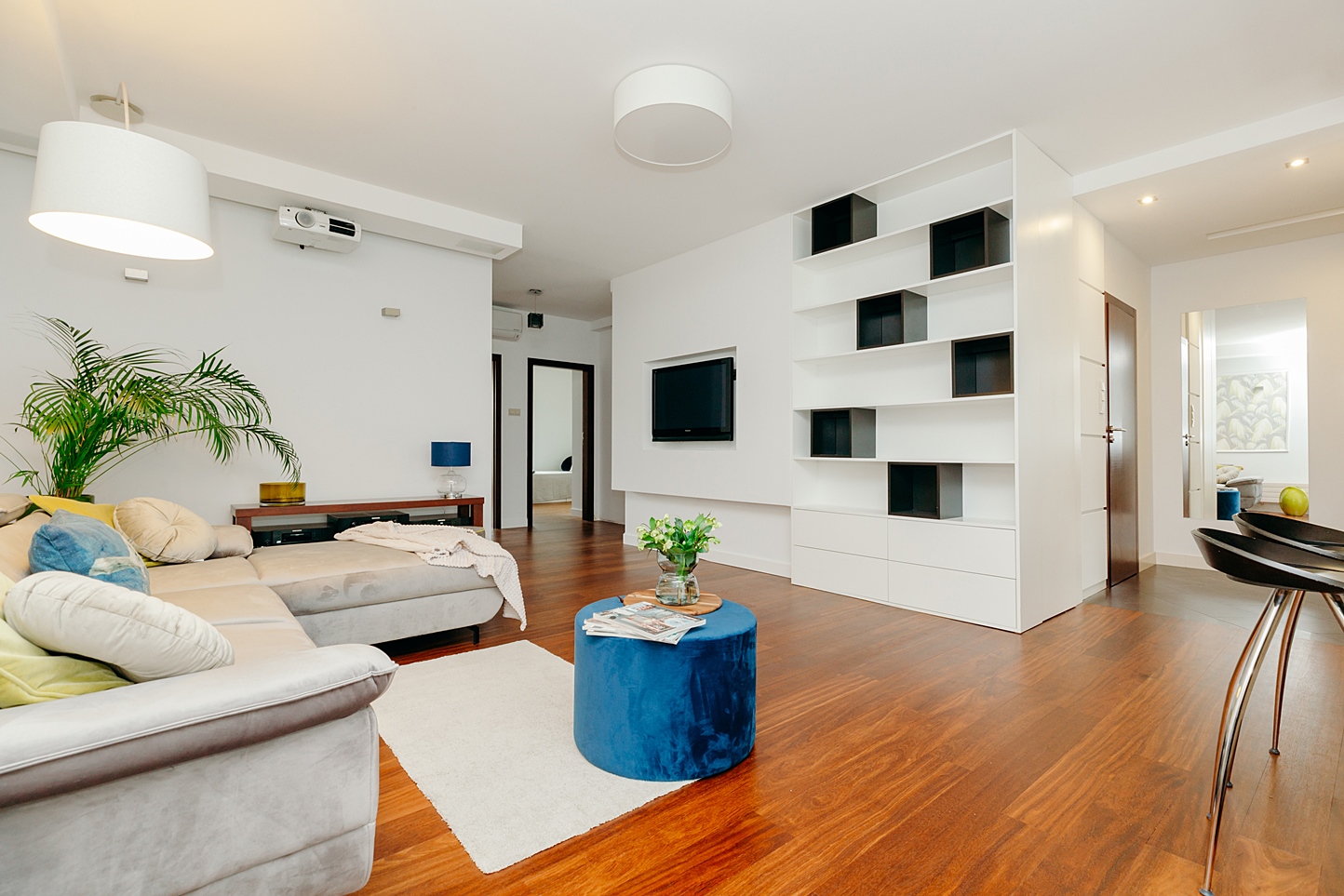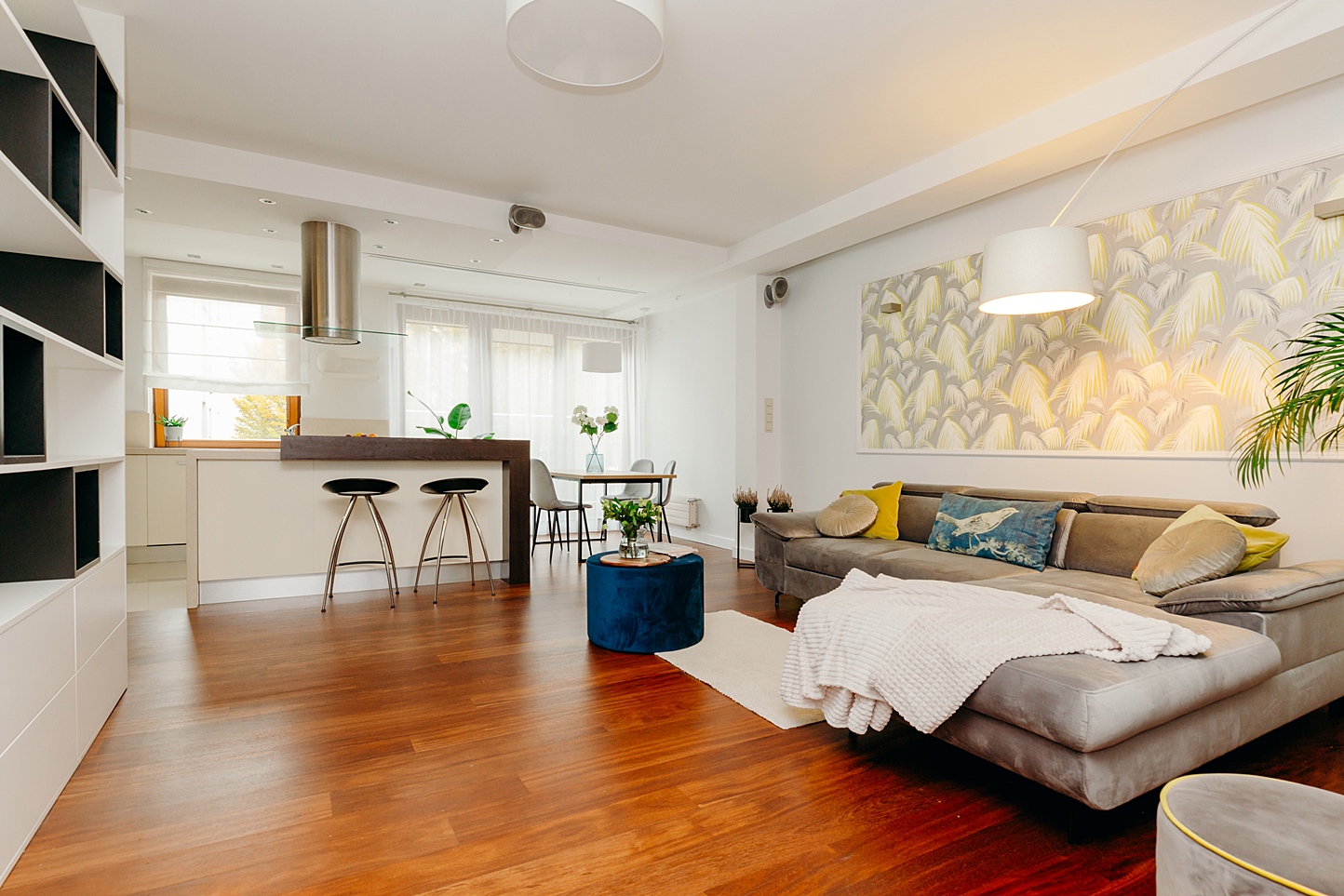 Apartament urządzony ze smakiem, w przyjaznych, naturalnych barwach, łączący nowoczesne rozwiązania z przytulną atmosferą. Wnętrze zostało wykończone z użyciem materiałów wysokiej klasy – eleganckie drewniane podłogi, zabudowy stolarskie na wymiar oraz stylowa armatura tworzą spójną, harmonijną całość.