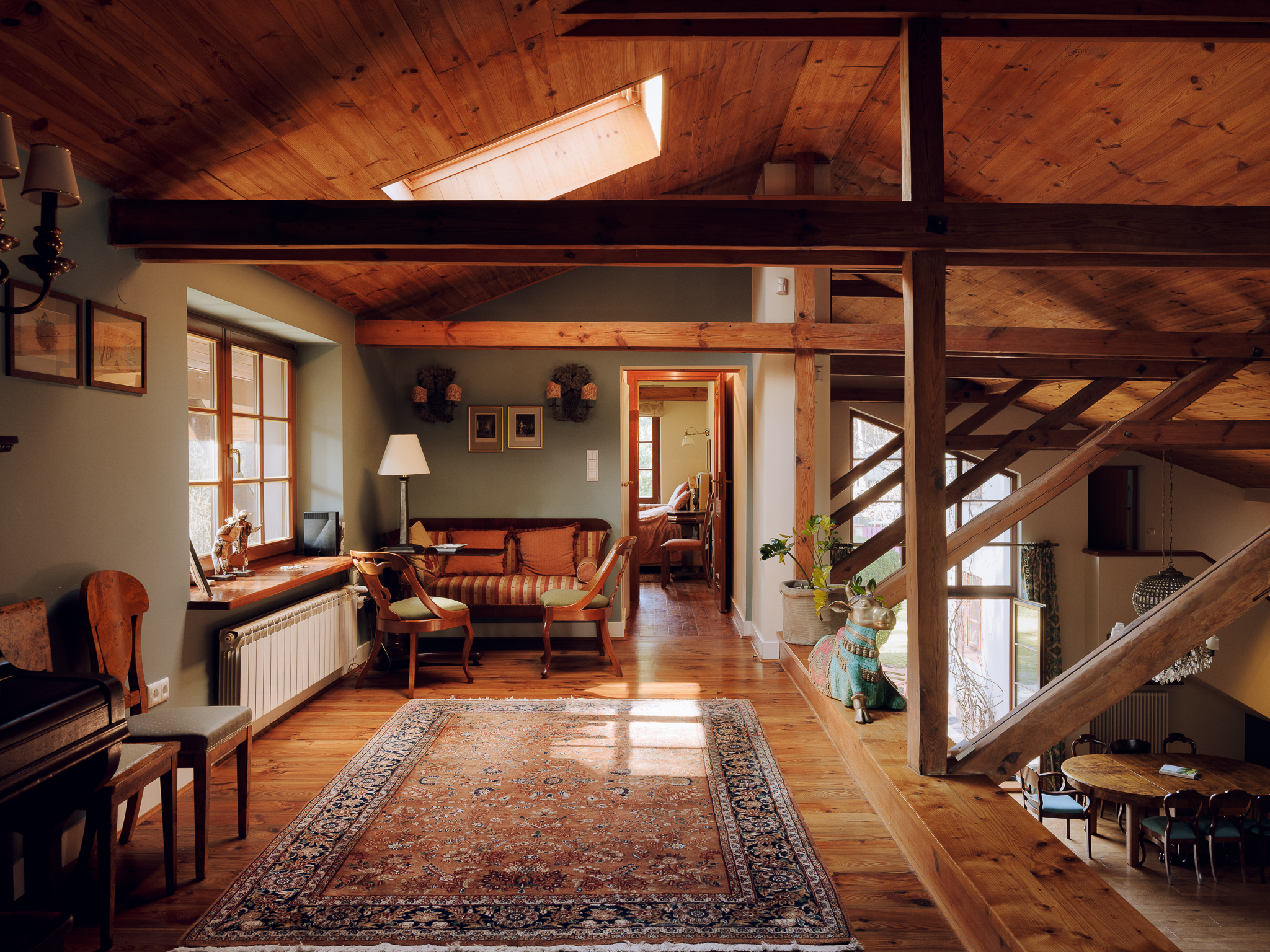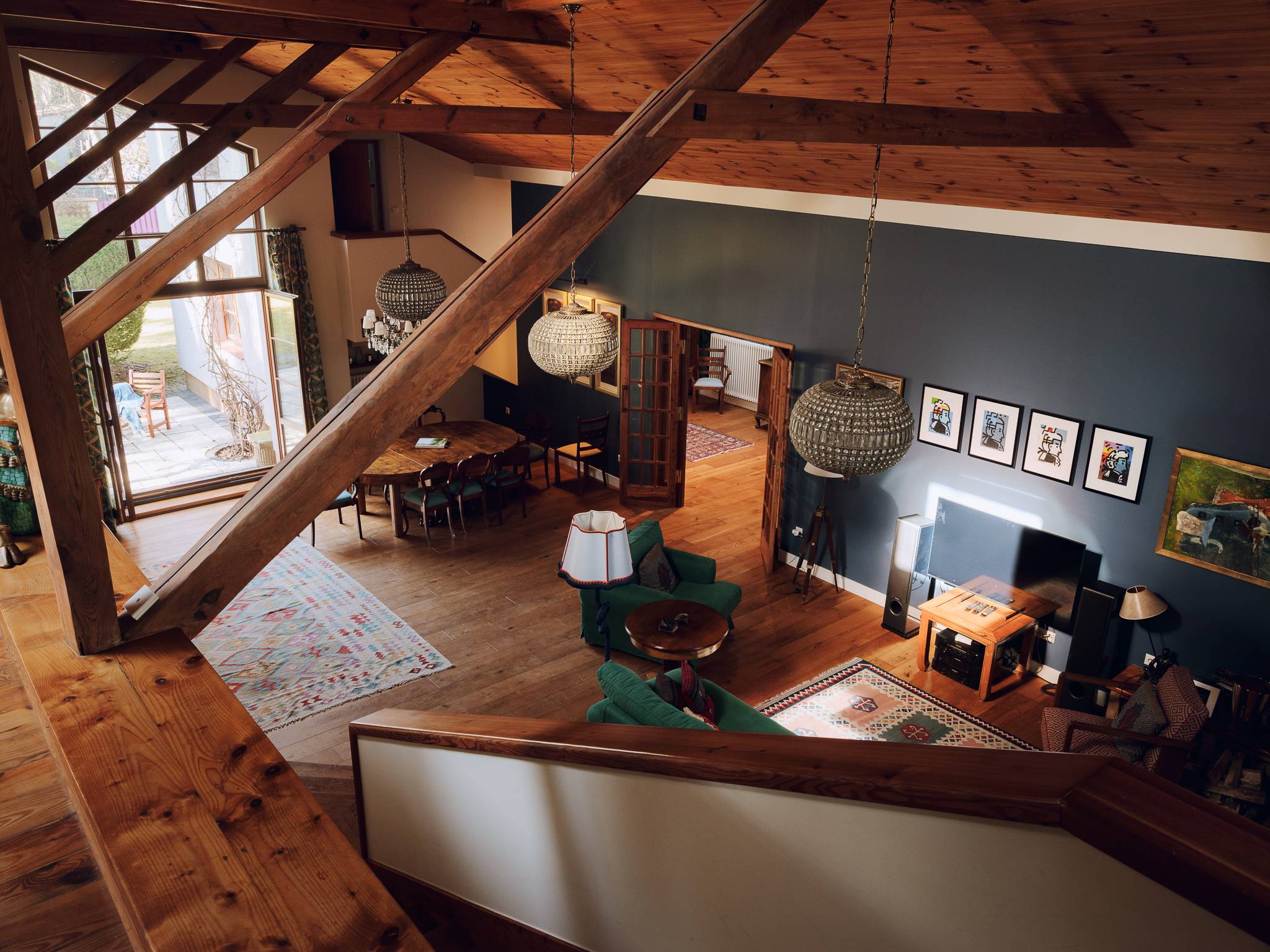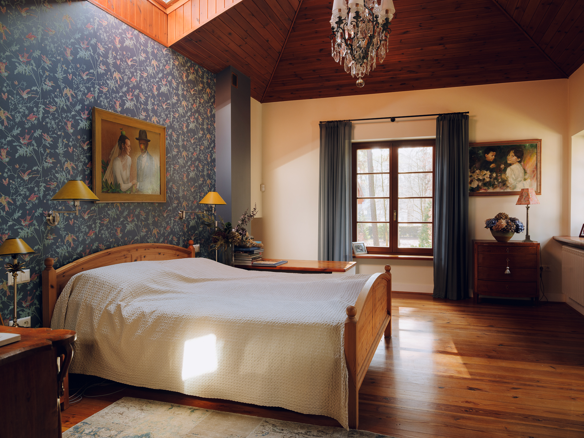 Wyjątkowy dom o niepowtarzalnym klimacie, zatopiony w ogrodzie pełnym drzew i światła. Idealna przestrzeń dla osób szukających spokoju, prywatności i kontaktu z naturą – zaledwie 30 minut od Warszawy.